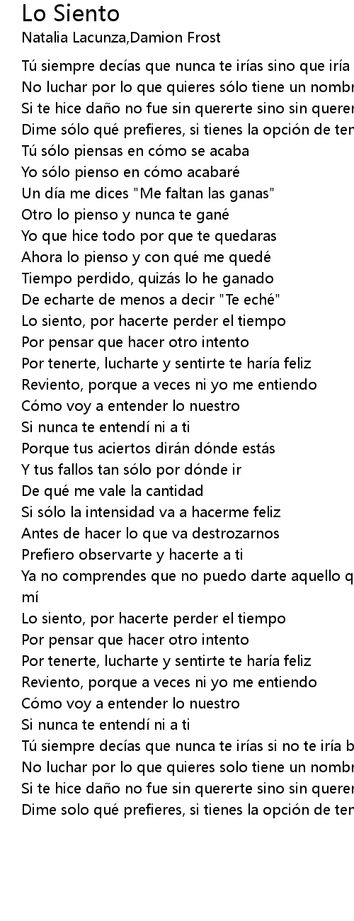 | [00:59.79] | De echarte de menos a decir " Te eché" |