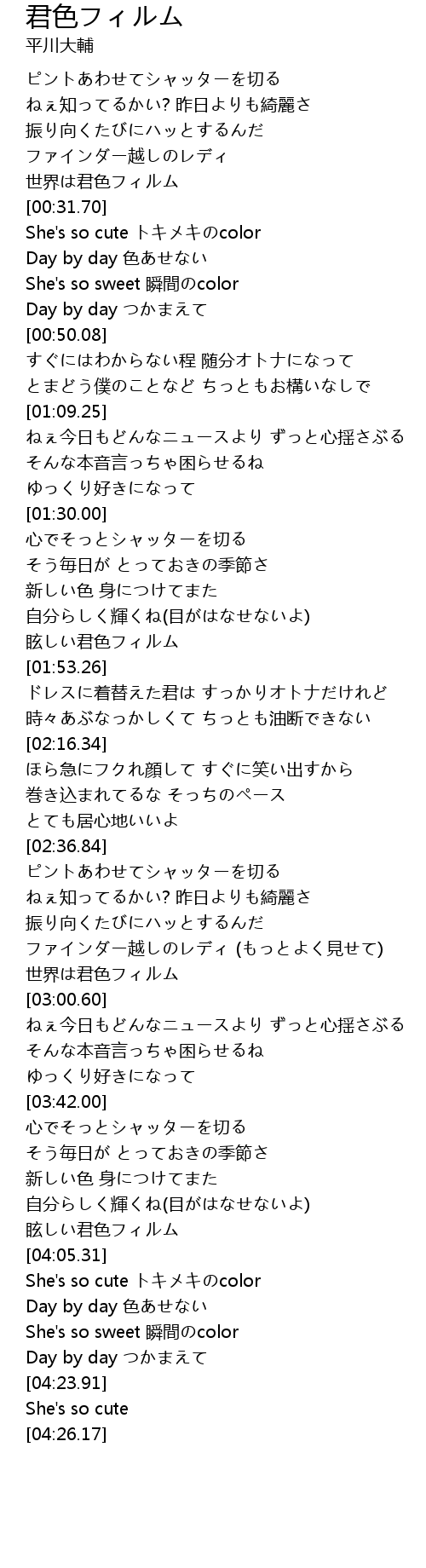 | [04:05.46] | She's so cute トキメキのcolor |