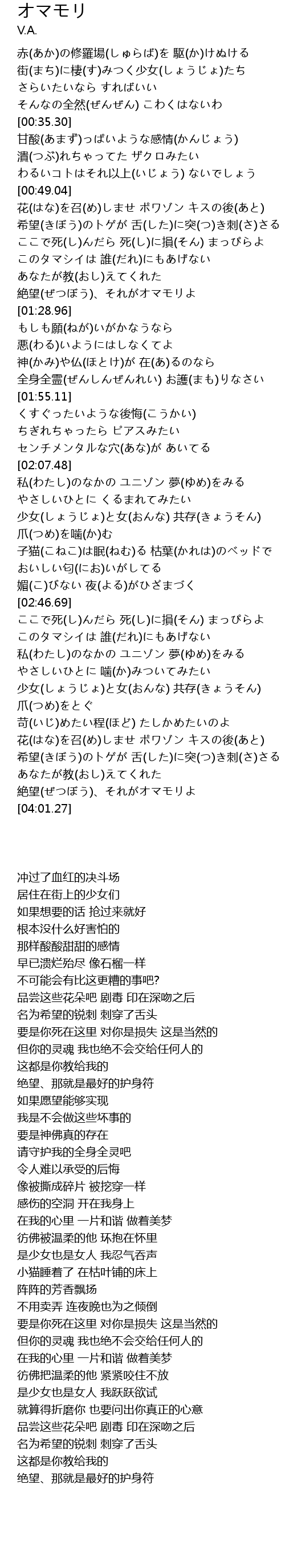 | [03:51.65] | 絶望(ぜつぼう)、それがオマモリよ |