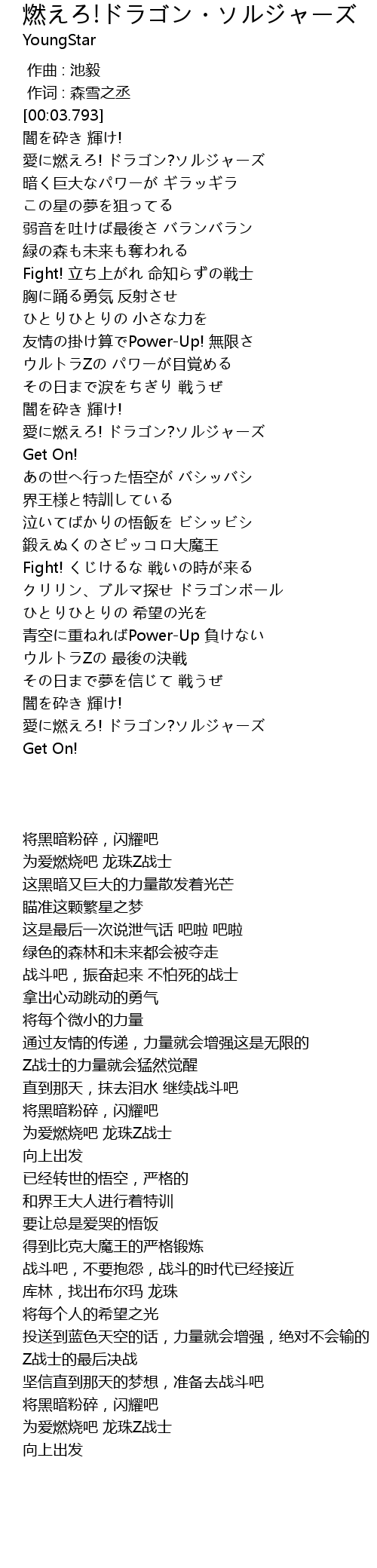 | [00:09.256] | 愛に燃えろ! ドラゴン?ソルジャーズ |