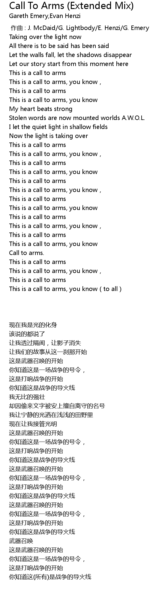 | 歌曲 | Call To Arms (Extended Mix) |