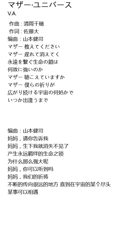 | 歌曲 | マザー·ユニバース |