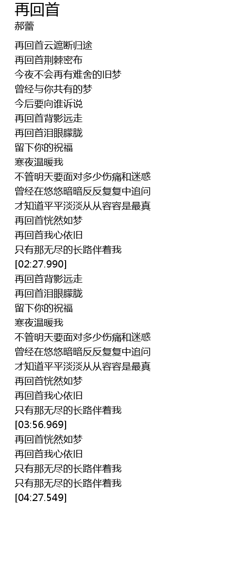 | [01:17.539] | ceng jing zai you you an an fan fan fu fu zhong zhui wen |