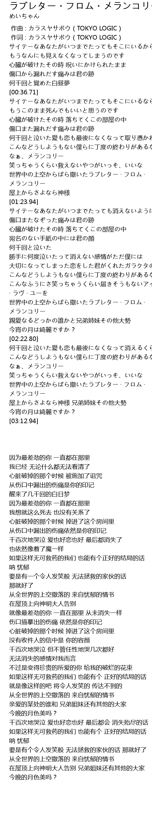 | [03:02.47] | 世界中の上空からばら撒いたラブレター · フロム · メランコリー |