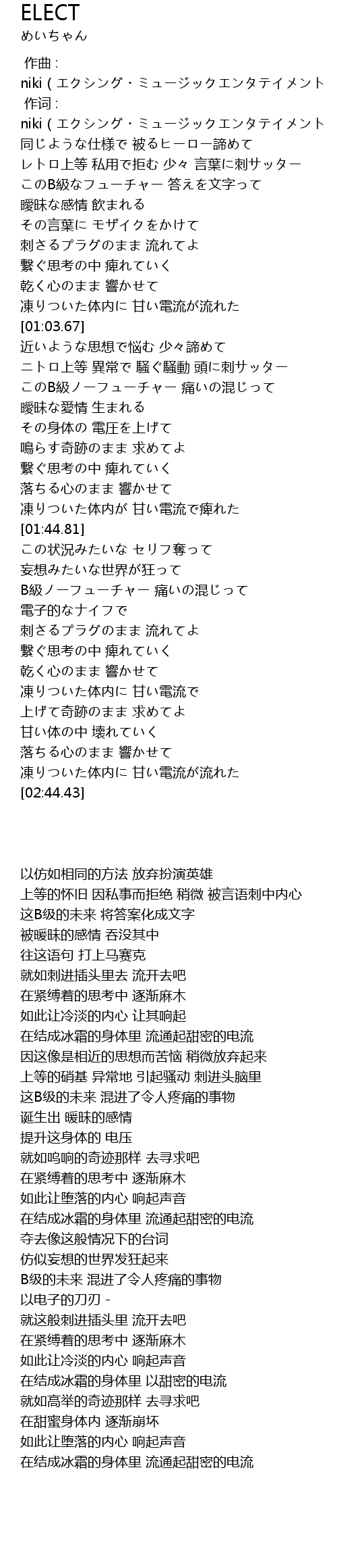 | 歌曲 | ELECT |