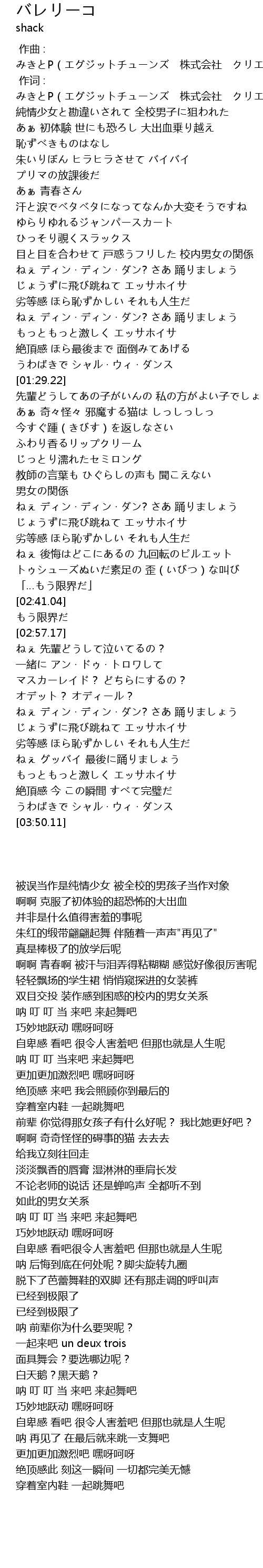 | [00:01.000] | 作词 : みきとP(エグジットチューンズ 株式会社 クリエイター支援事業部) |