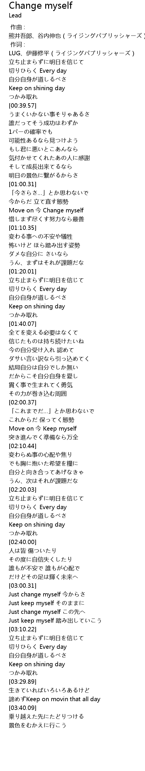 | [03:00.57] | Just change myself 今からさ |