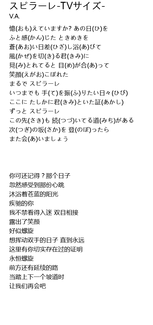 | 歌曲 | スピラーレ-TVサイズ- |