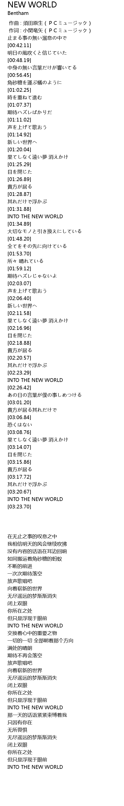 | [02:23.29] | INTO THE NEW WORLD |