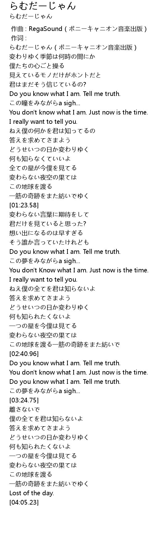 [00:01.000] 作词 : らむだーじゃん(ポニーキャニオン音楽出版)