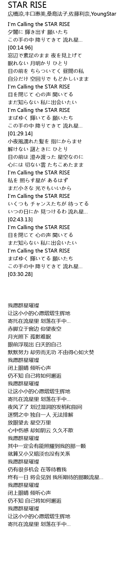| [03:22.64] | この手の中 降りてきて 流れ星… |