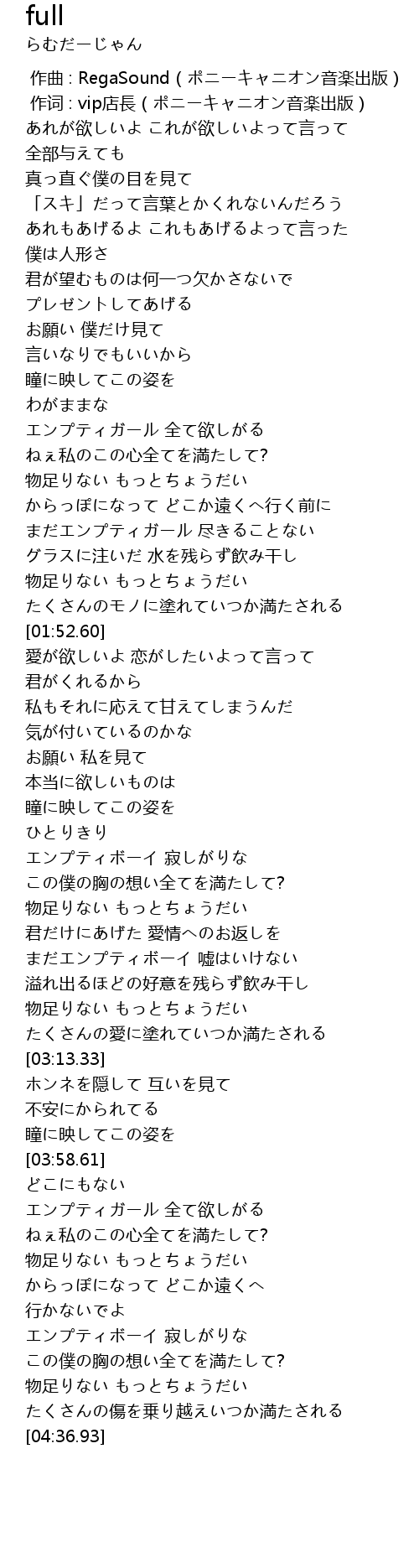| [04:02.53] | エンプティガール 全て欲しがる |