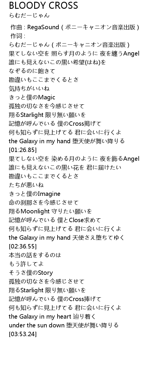 | [03:26.47] | 記憶が呼んでいる 僕のCross捧げて |