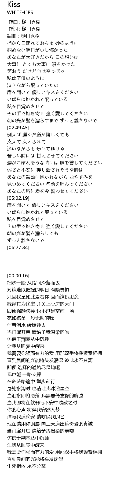 | [01:52.48] | 当门扉开启 请给予我温柔的吻 |