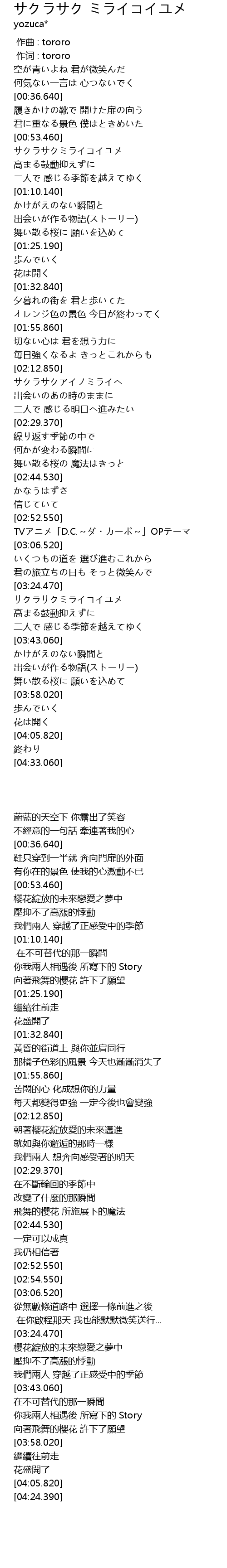 作词 : tororo |