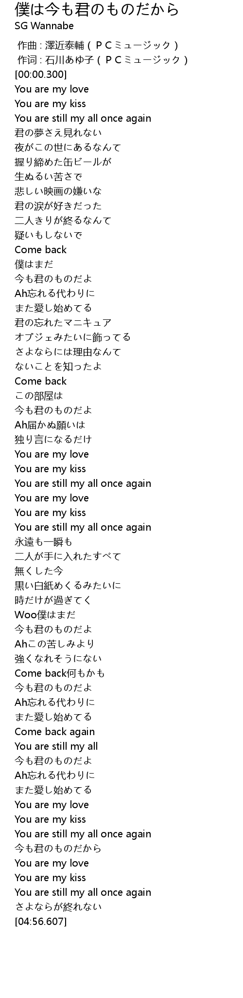 | [04:14.337] | 今も君のものだよ |