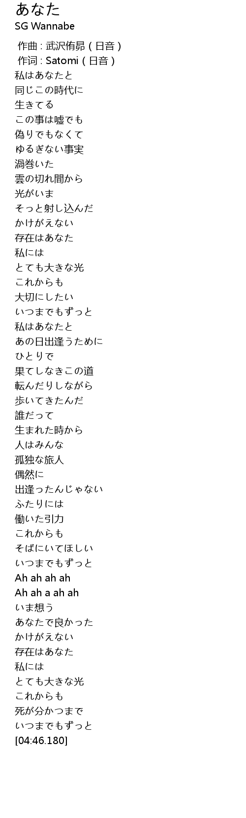| 歌曲 | あなた |