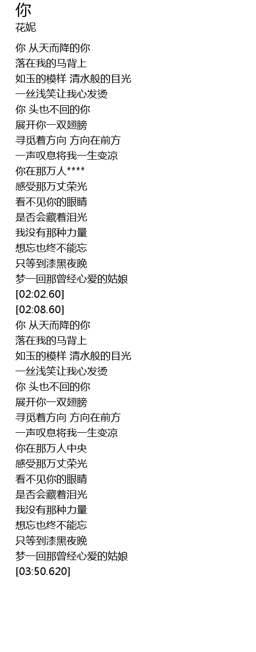 | [02:15.580] | 你 从天而降的你 |