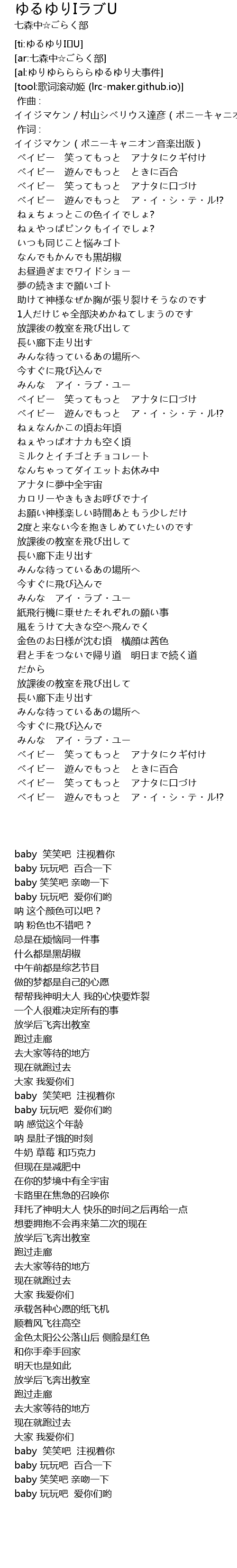 | [00:04.184] | ベイビー 遊んでもっと ときに百合 |