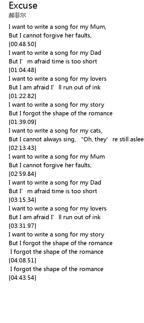 | [01:14.65] | But I am afraid I’ll run out of ink |