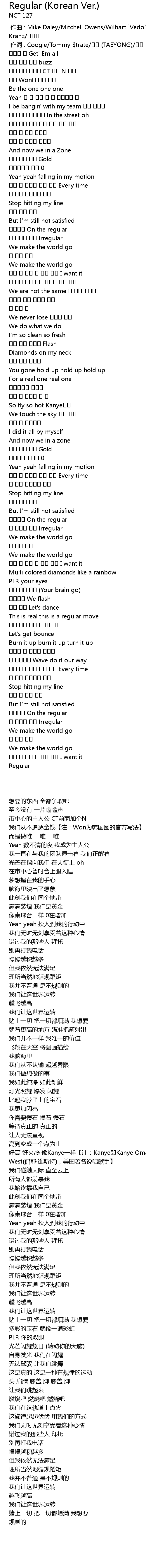 | [00:01.000] | 作词 : Coogie/Tommy $trate/태용 (TAEYONG)/마크 (MARK) |