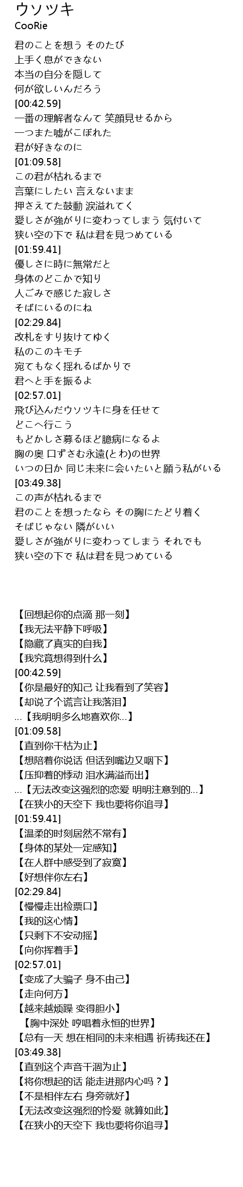 | [00:57.02] | 一つまた嘘がこぼれた |