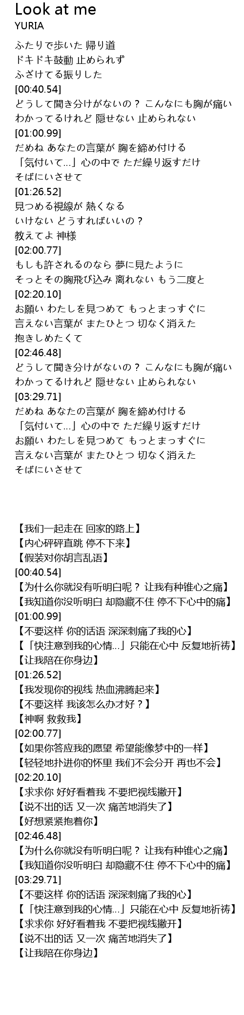 | [03:51.74] | 【求求你 好好看着我 不要把视线撇开】 |