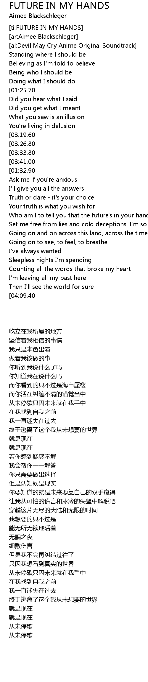 [ti:FUTURE IN MY HANDS] |