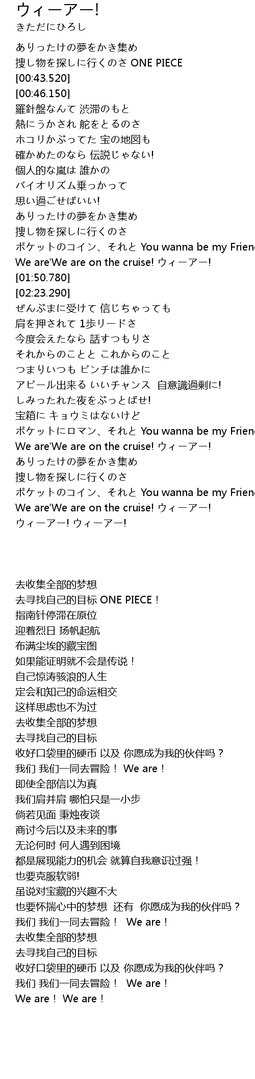 | [00:36.370] | 去寻找自己的目标 ONE PIECE! |