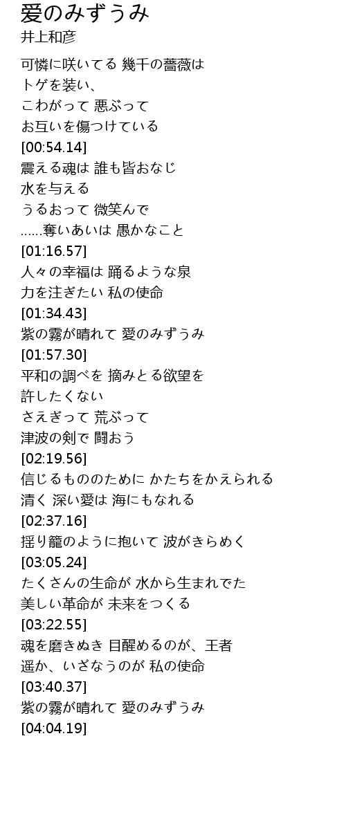 | [03:40.63] | 紫の霧が晴れて 愛のみずうみ |