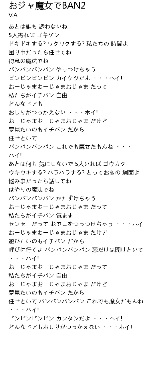 | [01:57.490] | ビンビンビンビン カンタンだよ ・・・ヘイ! |