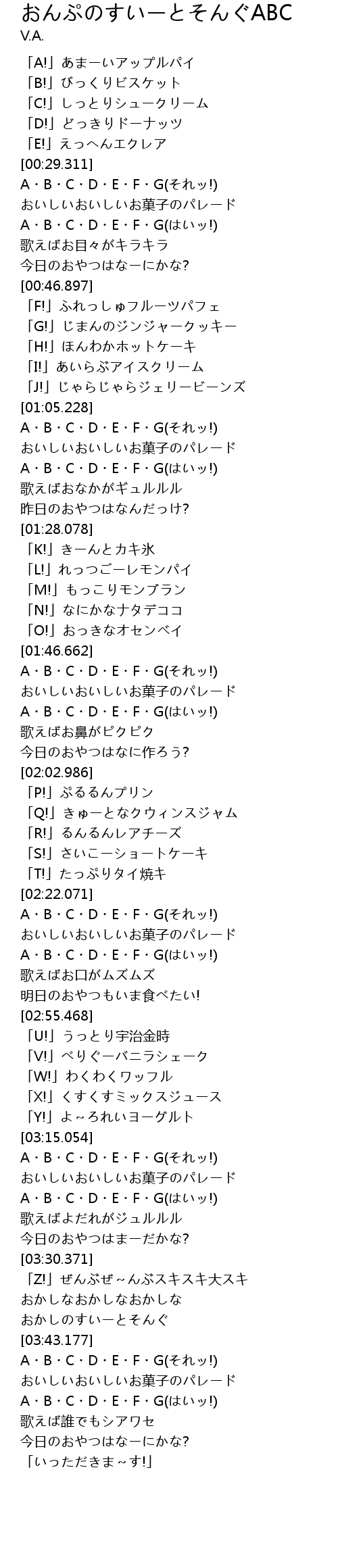 | [03:43.428] | A・B・C・D・E・F・G(それッ!) |