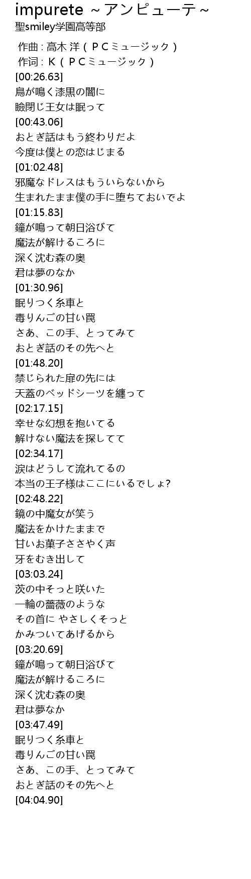 | [00:01.000] | 作词 : K(PCミュージック) |