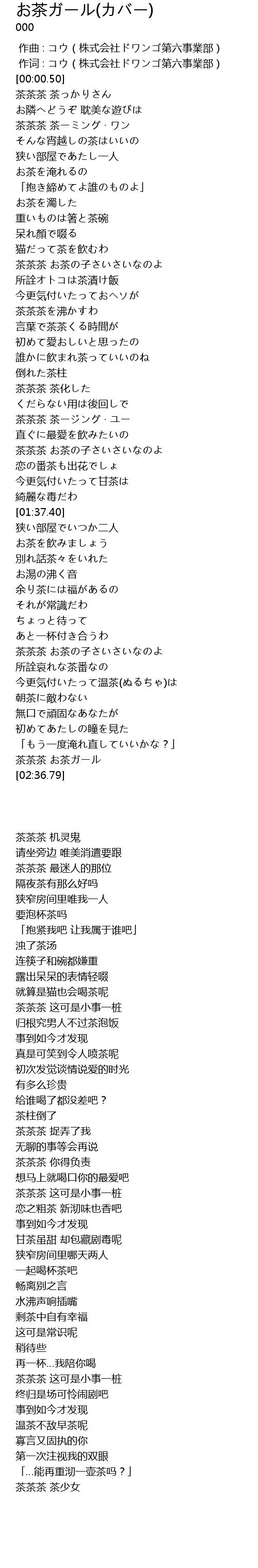 | [02:29.39] | 茶茶茶 お茶ガール |