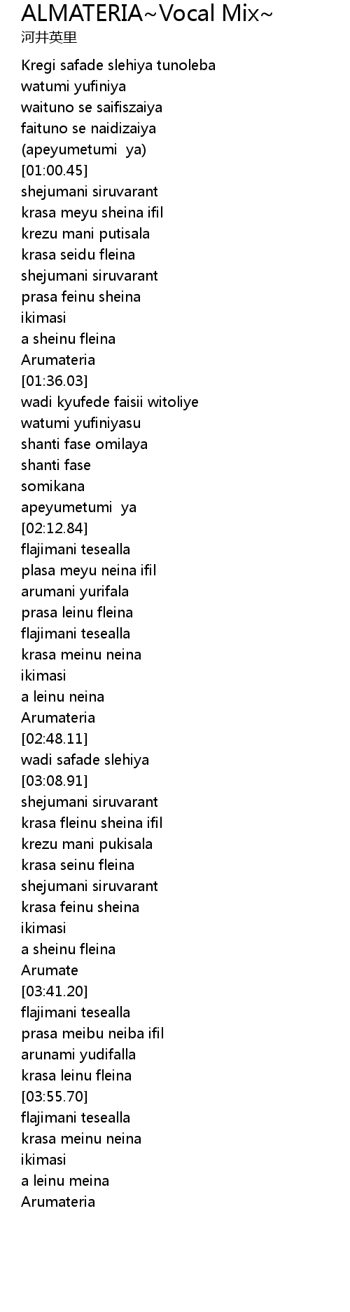 | [02:39.25] | Arumateria |