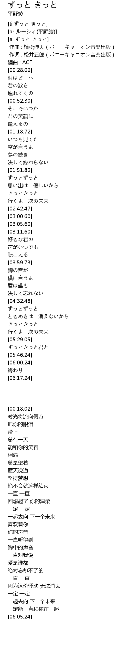| [00:01.000] | 作词 : 松井五郎(ポニーキャニオン音楽出版) |