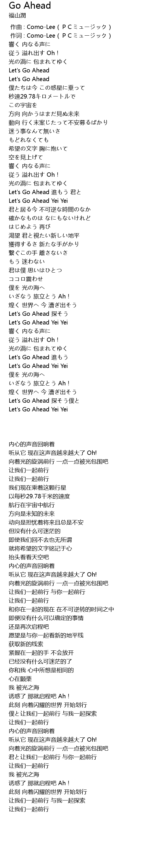 | [01:17.610] | Let' s Go Ahead jìn jūn |