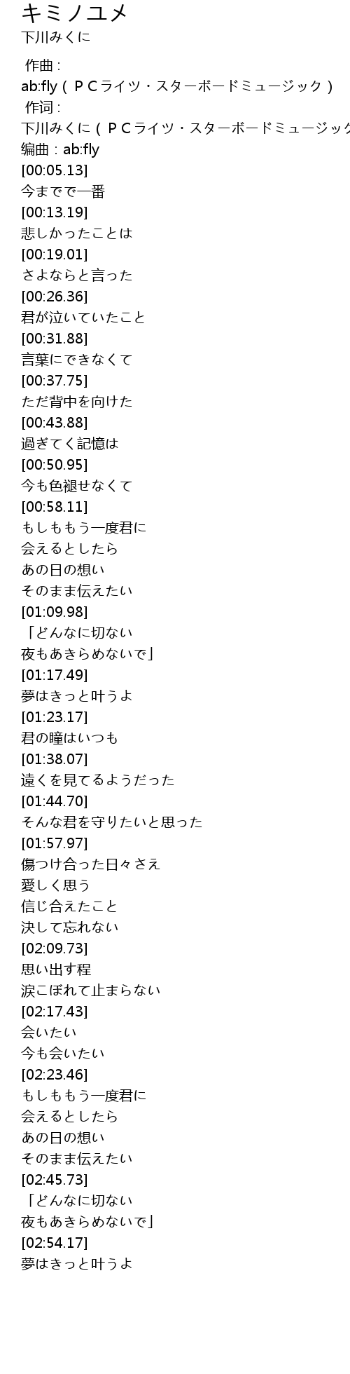 [00:00.000] 作曲 : ab:fly(PCライツ・スターボードミュージック)
