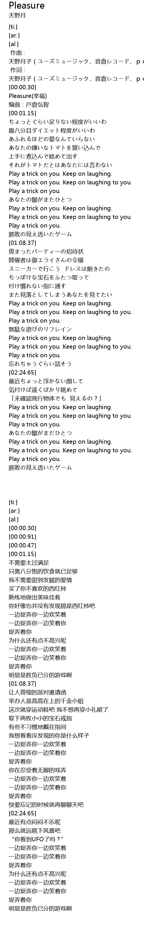 | [00:00.010] | 作词 : 天野月子(ユーズミュージック、音倉レコード、pcライツ) |