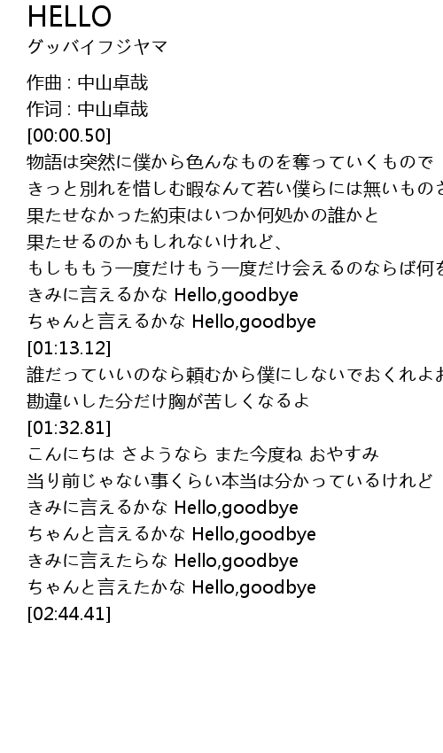 | [01:03.87] | ちゃんと言えるかな Hello,goodbye |