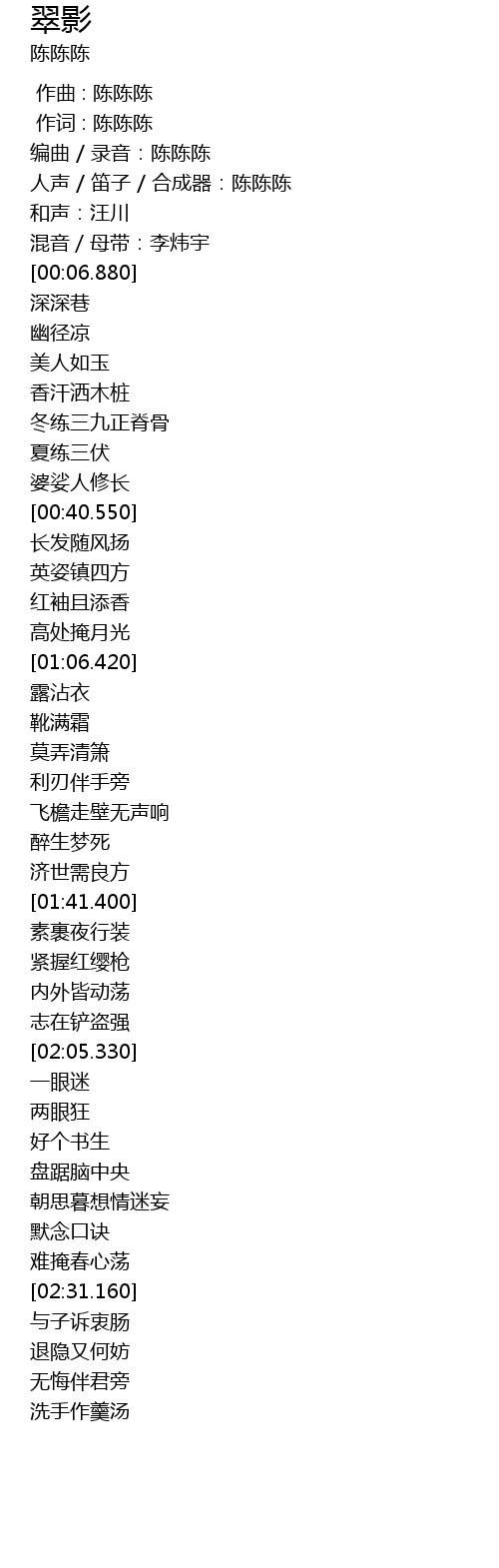 | [00:02.710] | 人声 / 笛子 / 合成器:陈陈陈 |