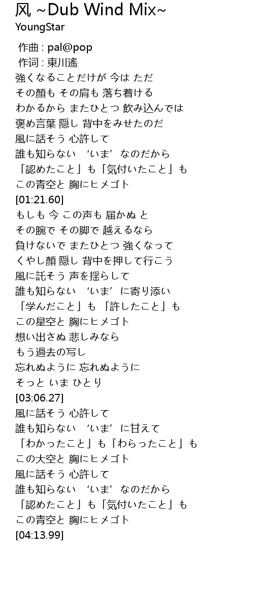 | [03:26.21] | 風に話そう 心許して |