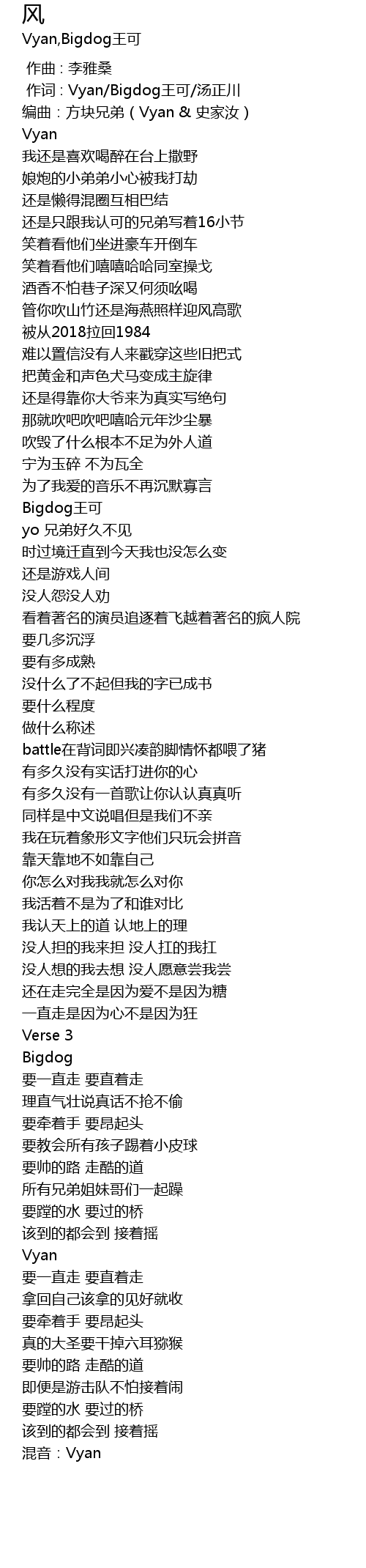 | [00:01.000] | 作词 : Vyan/Bigdog王可/汤正川 |