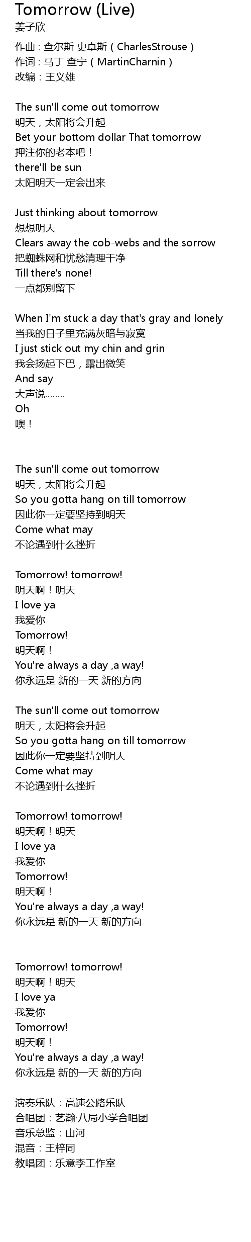 | 歌曲 | Tomorrow (Live) |