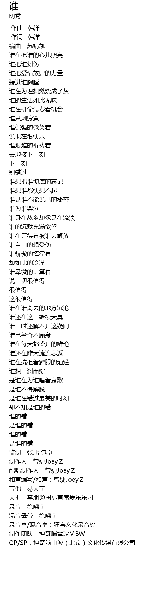 | [00:01.000] | 作词 : 韩洋 |