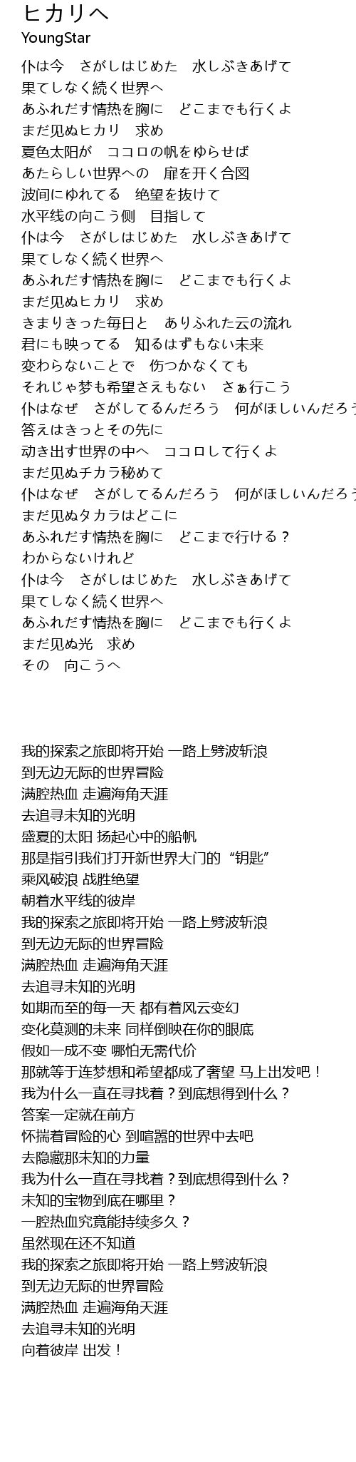 | [00:35.51] | まだ见ぬヒカリ 求め |