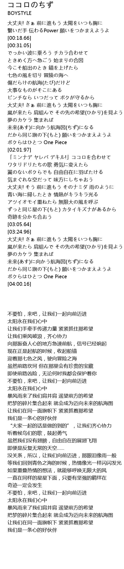 | [03:56.50] | ボクらはひとつ One Piece |