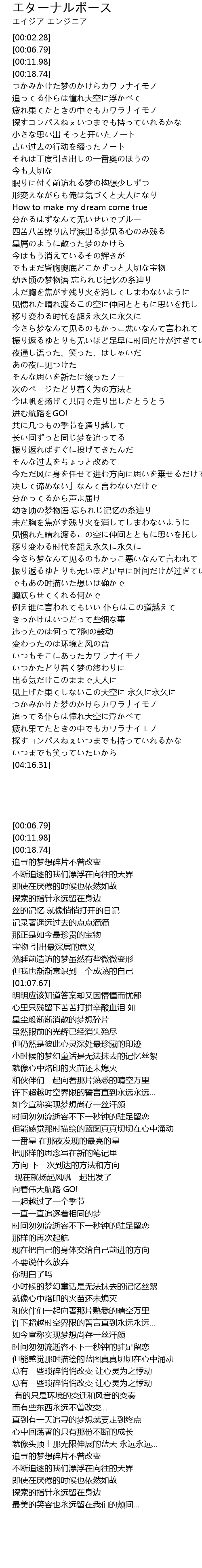 | 歌曲 | エターナルポース |
