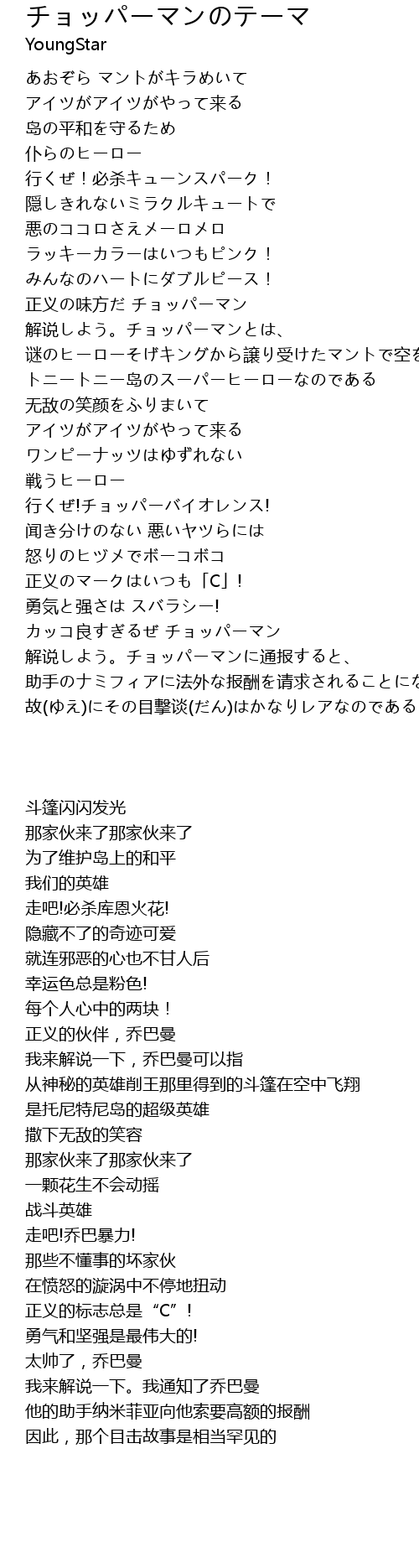 | [02:17.688] | カッコ良すぎるぜ チョッパーマン |