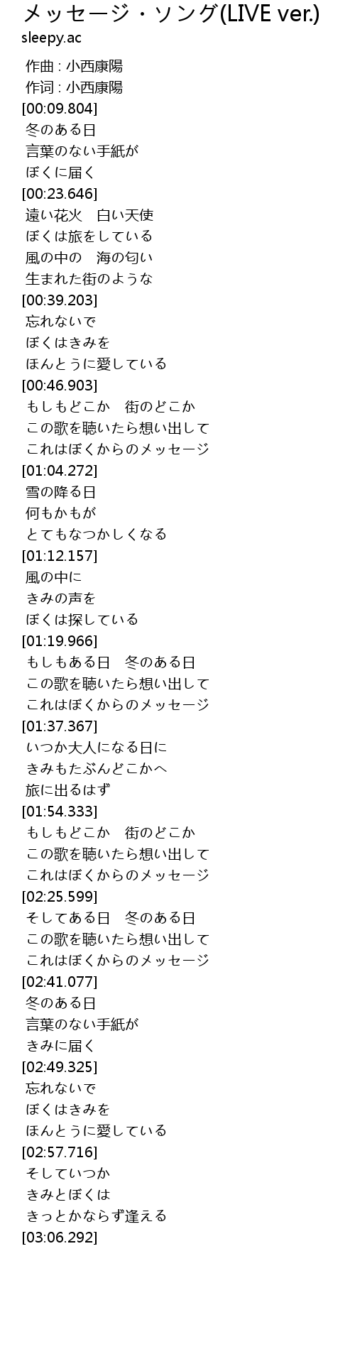 | [02:37.323] | これはぼくからのメッセージ |